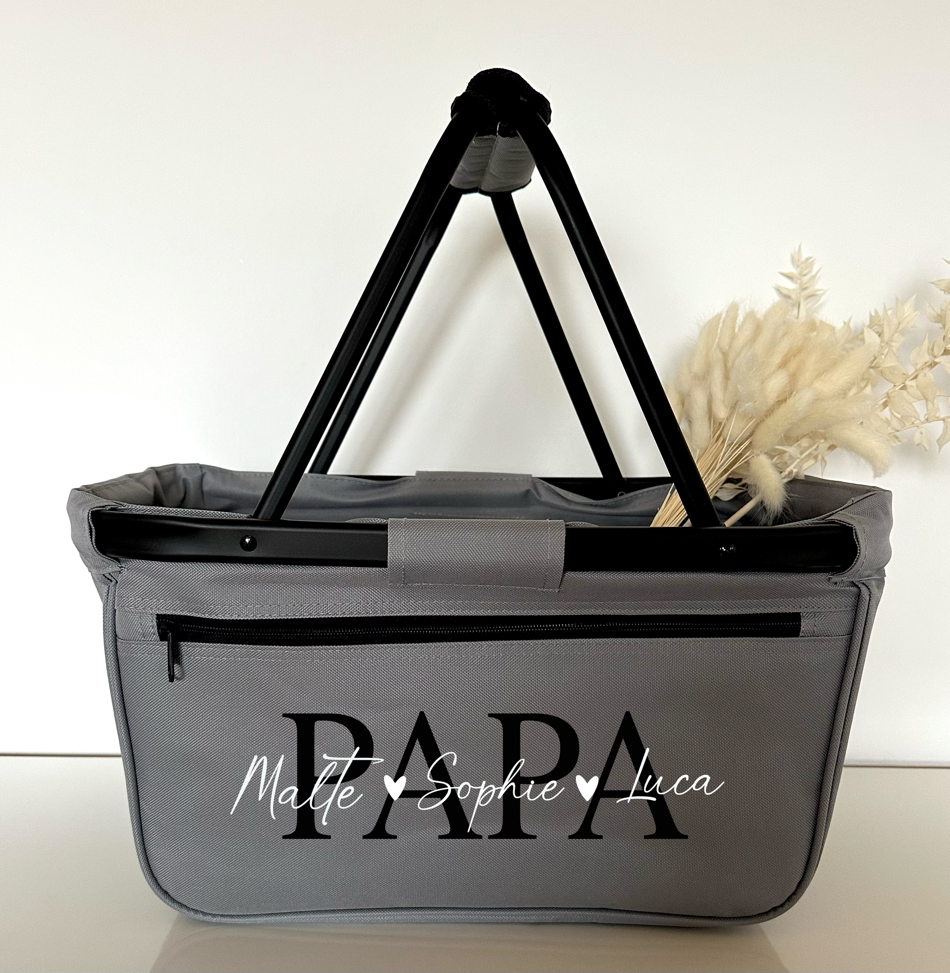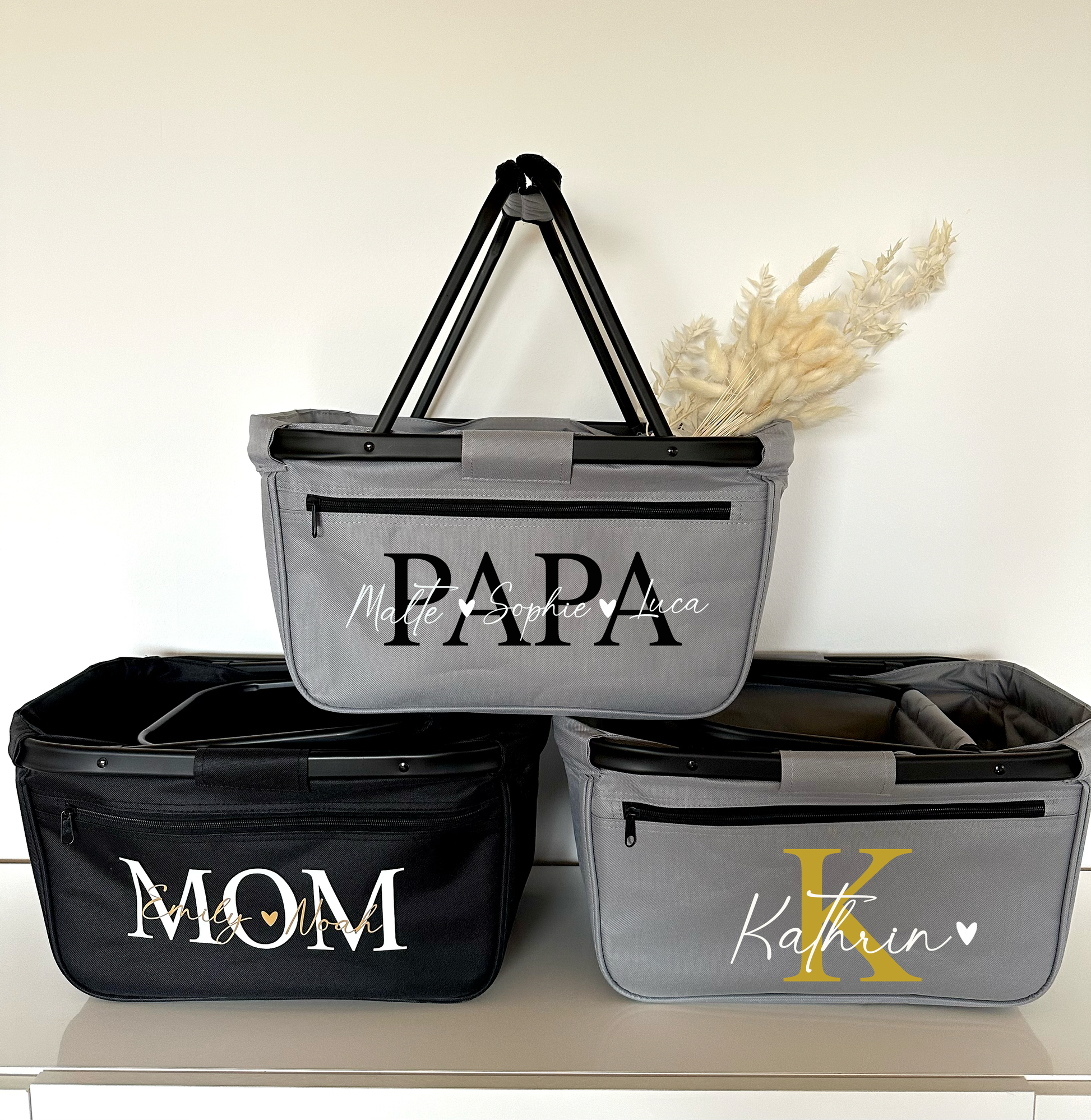 Dieser stilvolle Einkaufskorb wird mit deinem Wunschtext personalisiert und macht jede Shoppingtour besonders. Im Hintergrund steht ein großes Wort, während davor die gewünschten Namen platziert werden – eine wunderschöne, individuelle Gestaltung. Der Korb ist nicht nur praktisch für Einkäufe, sondern auch ein einzigartiges Geschenk für besondere Menschen. Robust, geräumig und mit liebevoller Personalisierung – der perfekte Begleiter für den Alltag!
