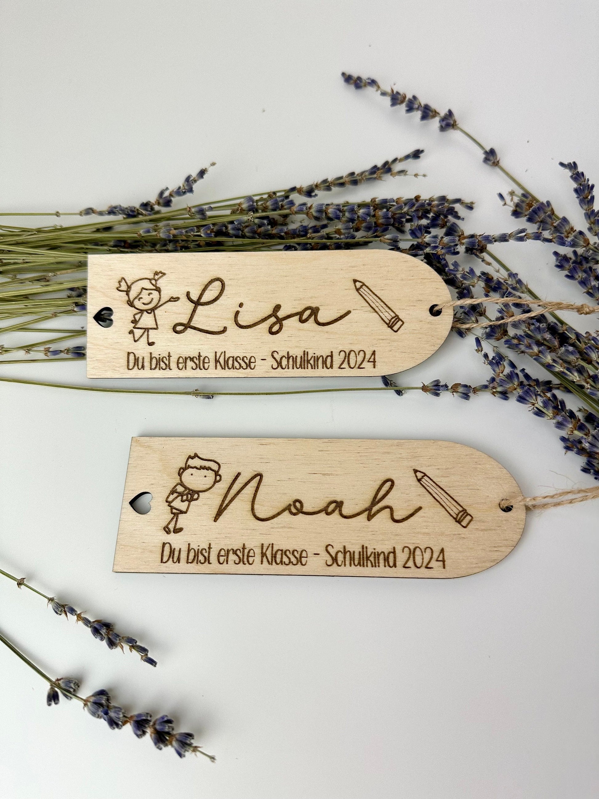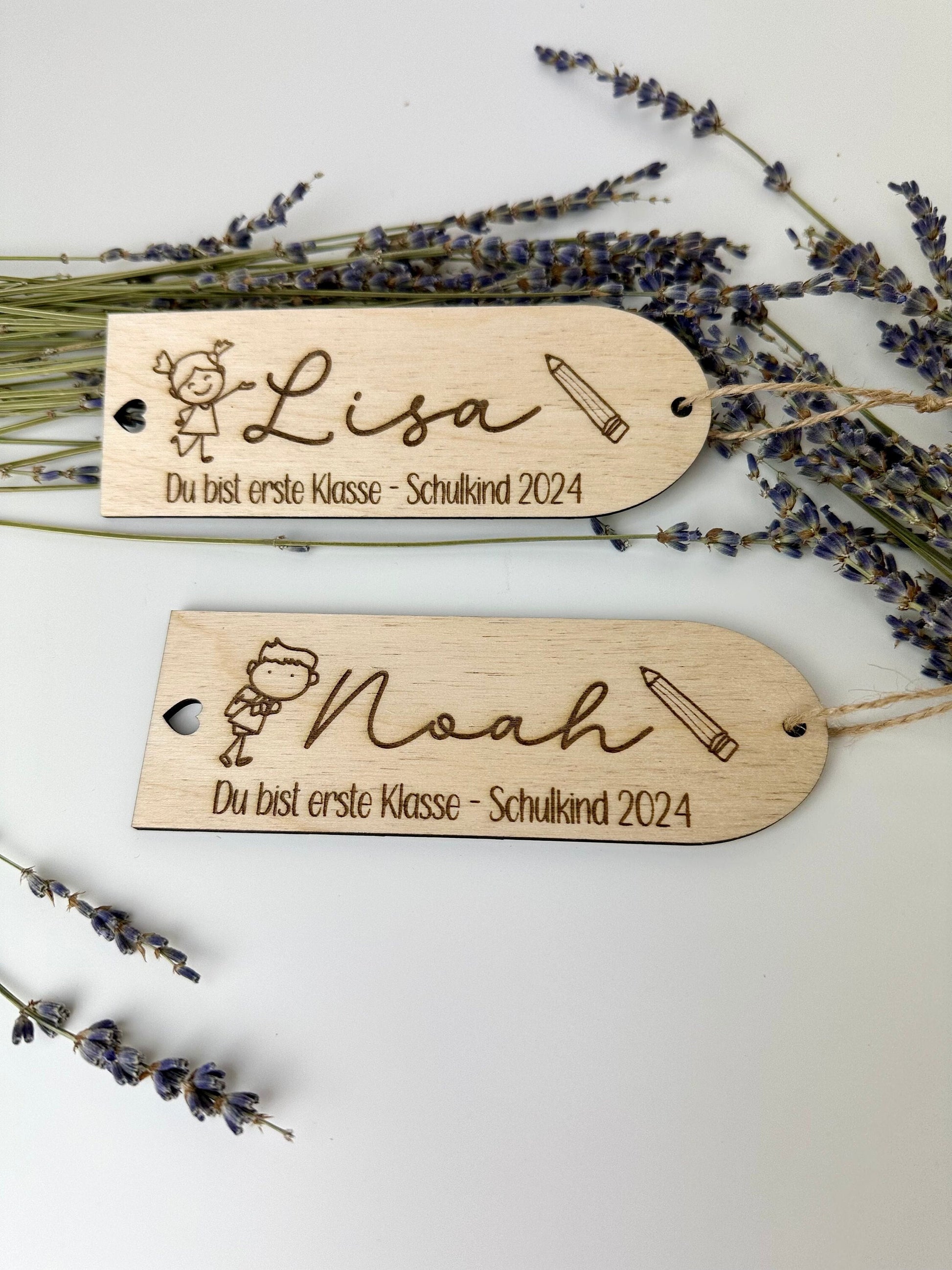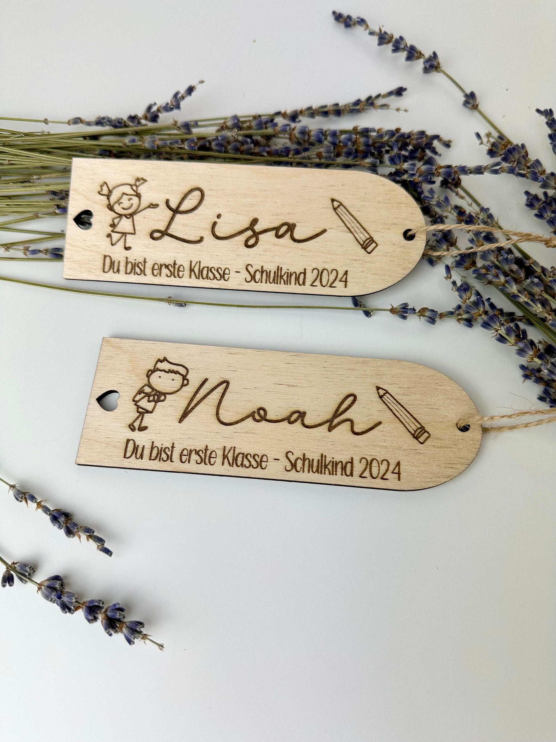 Das perfektes Geschenk zur Einschulung. Lesezeichen für Kinder, personalisiert mit Namen des Schulkindes. Egal ob als Inhalt für die Schultüte oder auch als Mitbringsel zur Einschulungsfeier. Dieses tolle Lesezeichen wird jedes Schulkind mit stolz tragen verwenden