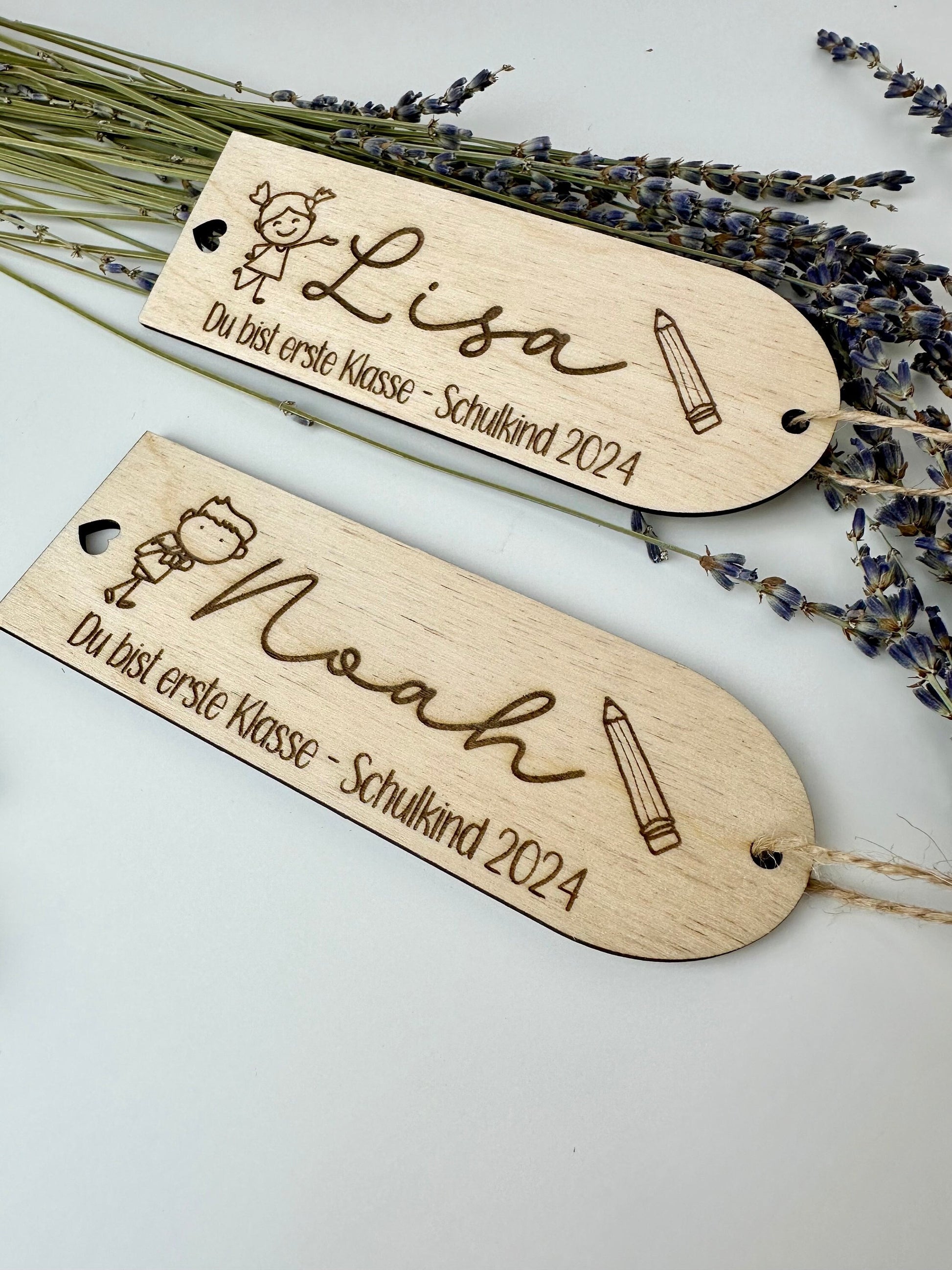 Lesezeichen Schulkind 2024 - personalisiert mit Namen - du bist erste Klasse -Geschenk zur Einschulung - Schultüte Inhalt - Lesehilfe