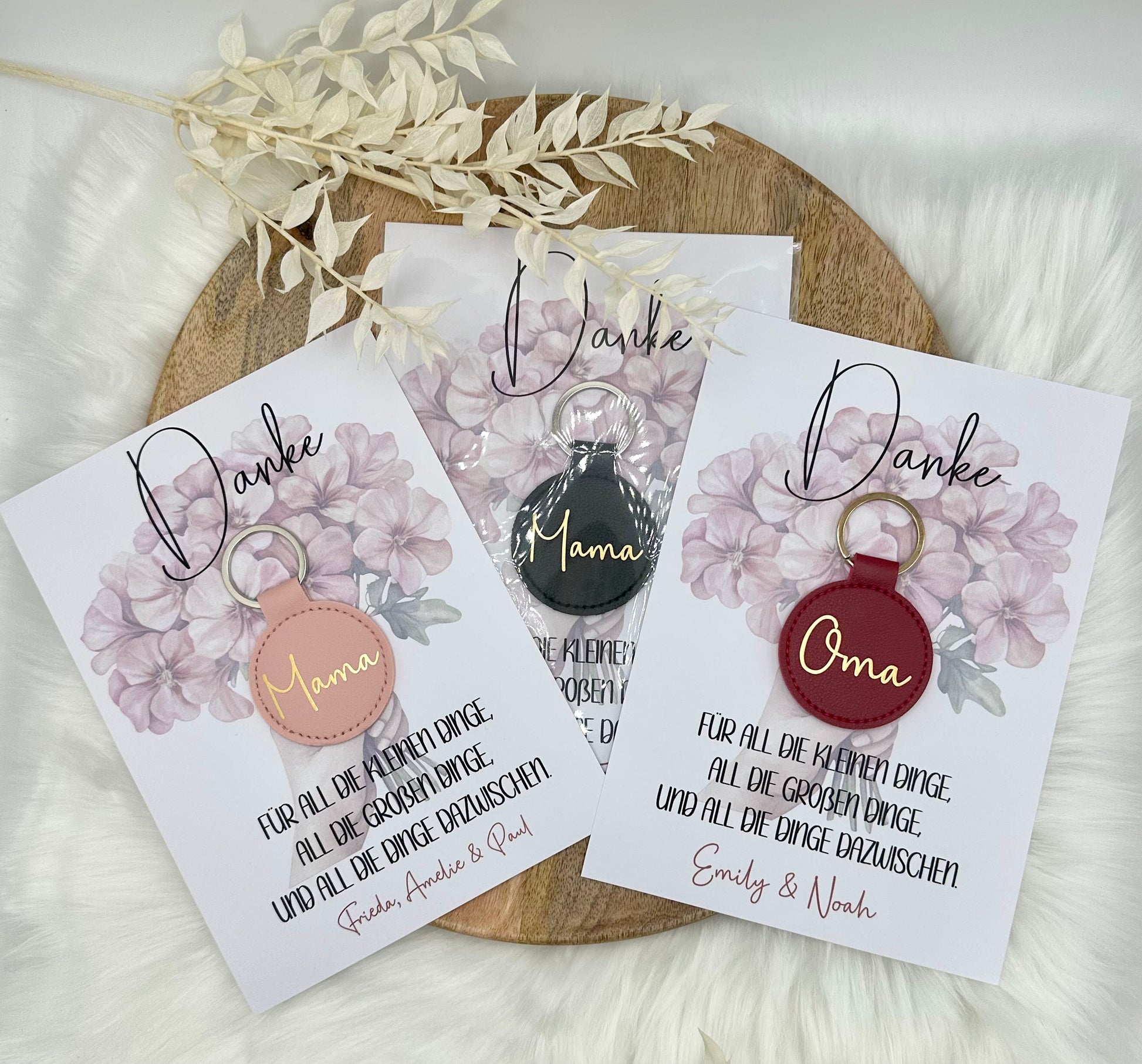 Diese liebevoll gestaltete und personalisierte Karte mit passendem Schlüsselanhänger ist das perfekte Geschenk zu Muttertag. Ob für Mama oder Oma – sie zaubert ein Lächeln ins Gesicht und bleibt lange in Erinnerung.