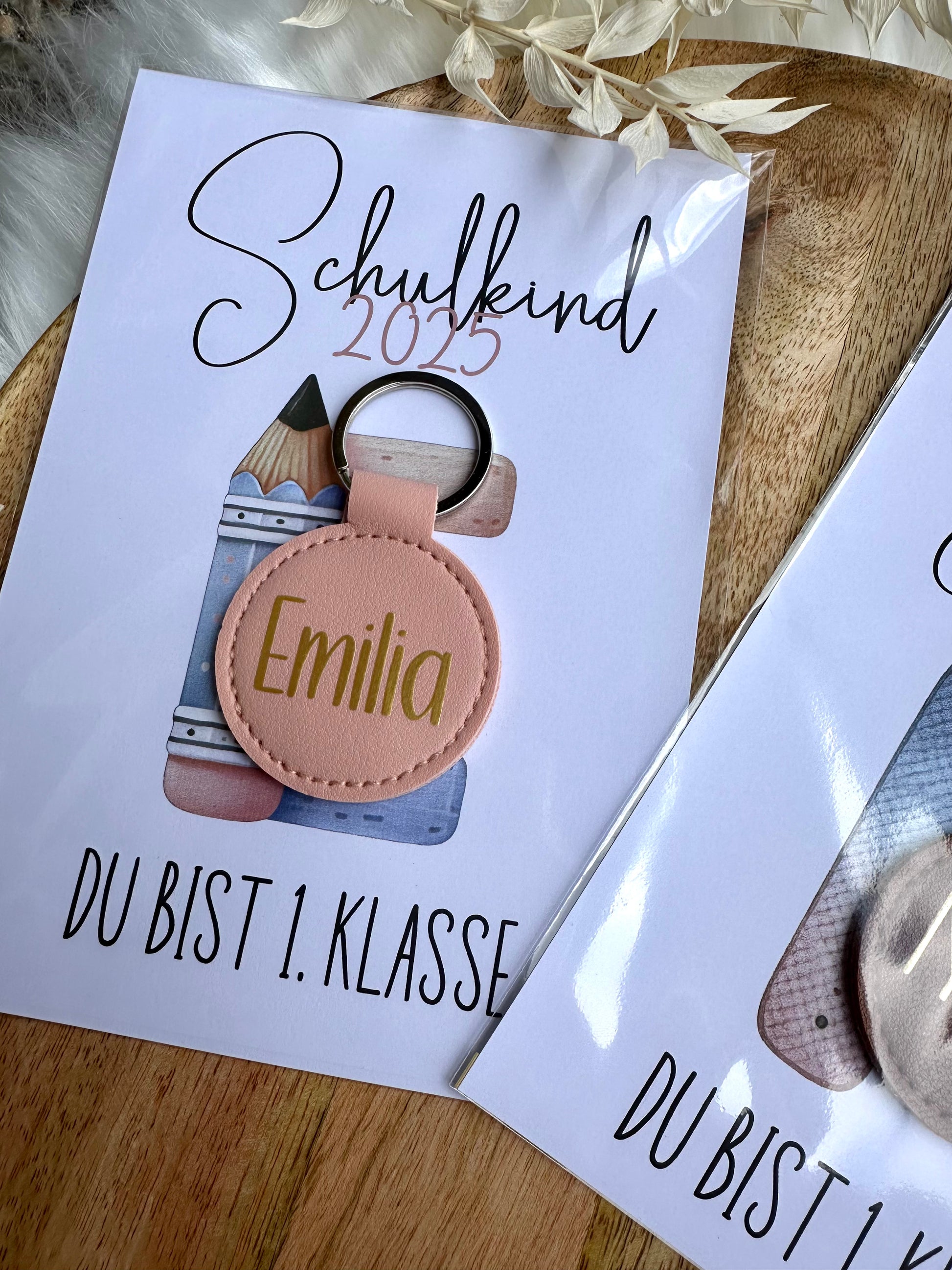 Schulkind 2025 - Karte mit Schlüsselanhänger