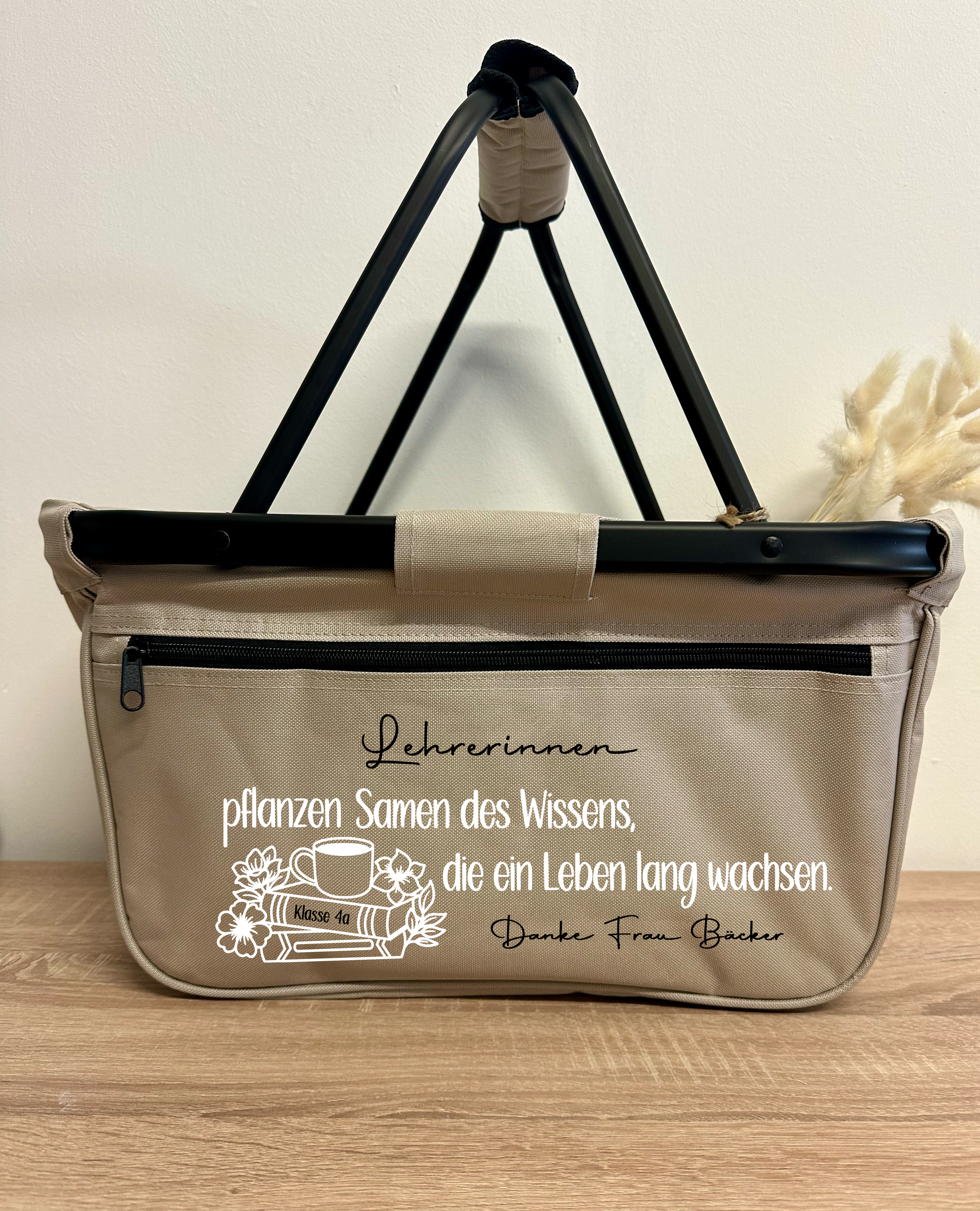 Personalisierter Einkaufskorb für Lehrer – mit Name, Klasse und Spruch