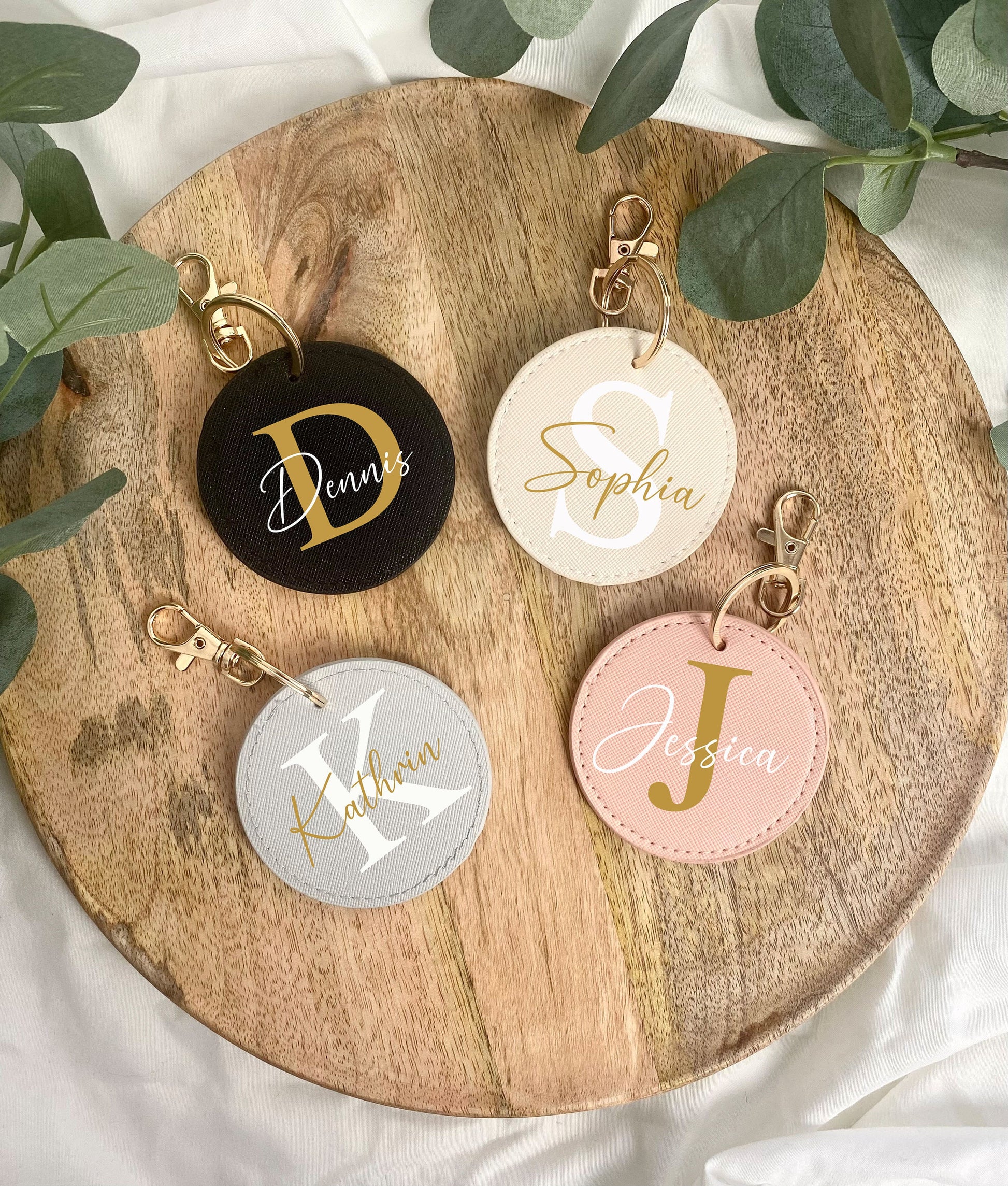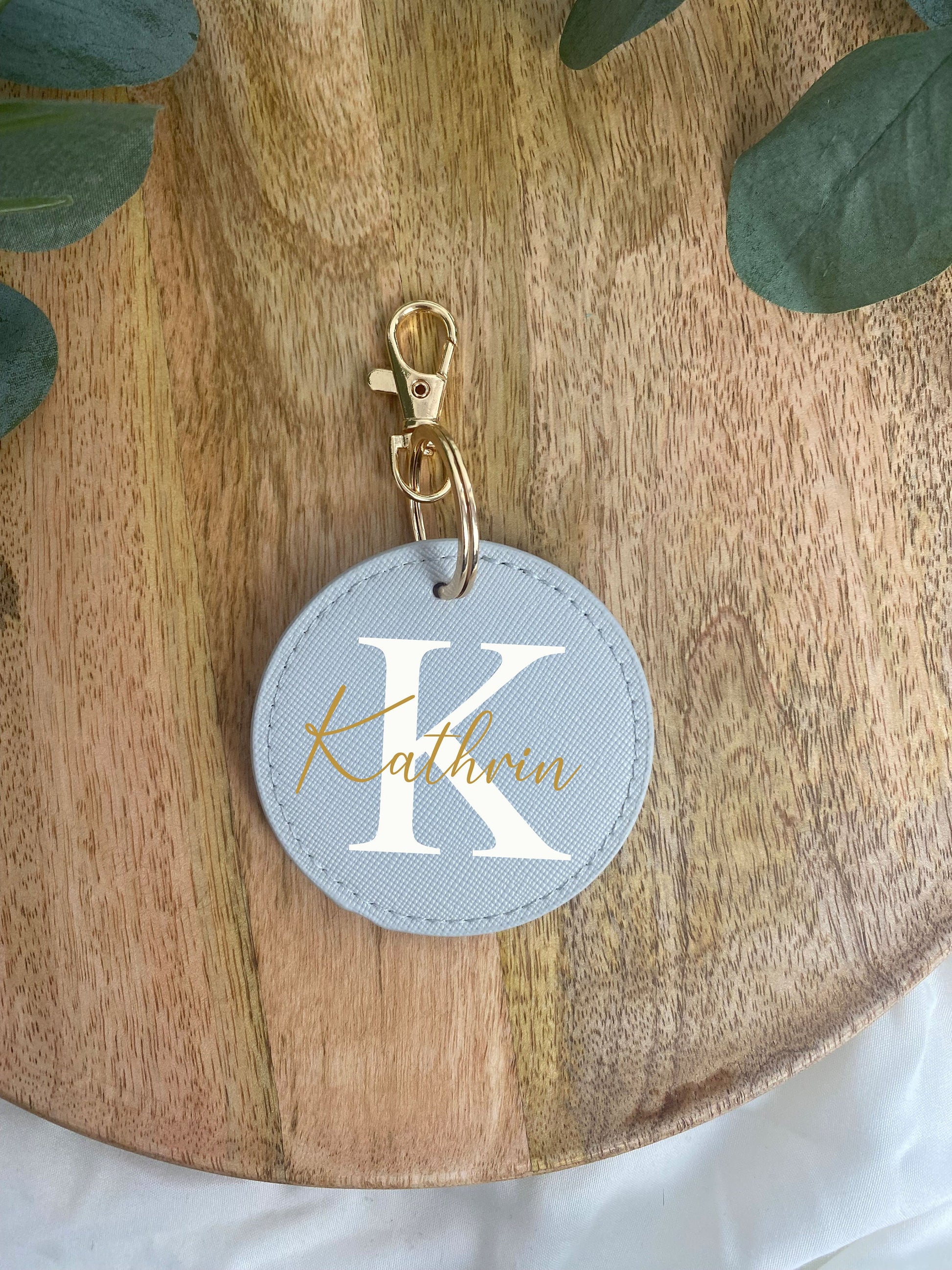 Schlüsselanhänger Personalisiert mit Namen - Reiseanhänger - Kunstleder Anhänger - Geschenk personalisiert - Beige - Rosa - Grau - Schwarz